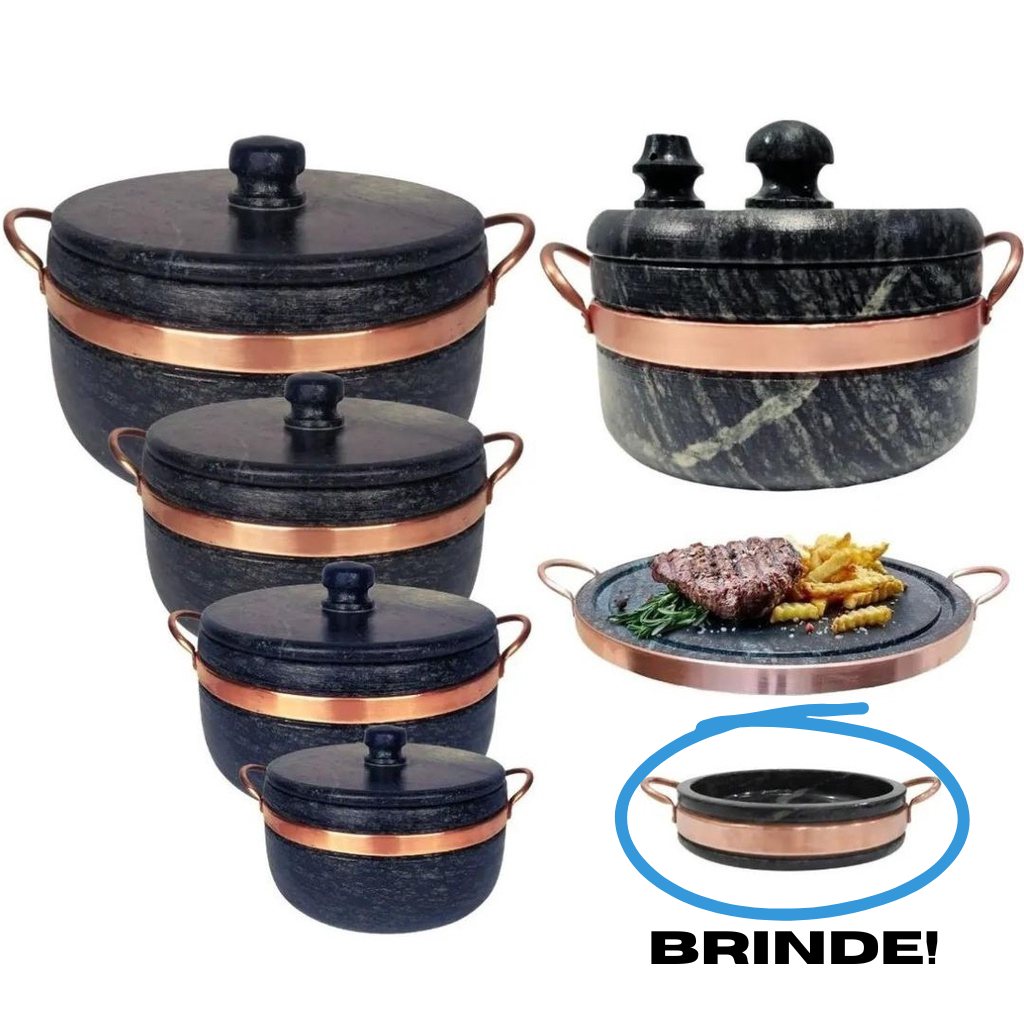 Conjunto Completo 5 Panelas de Pedra + Frigideira de Brinde