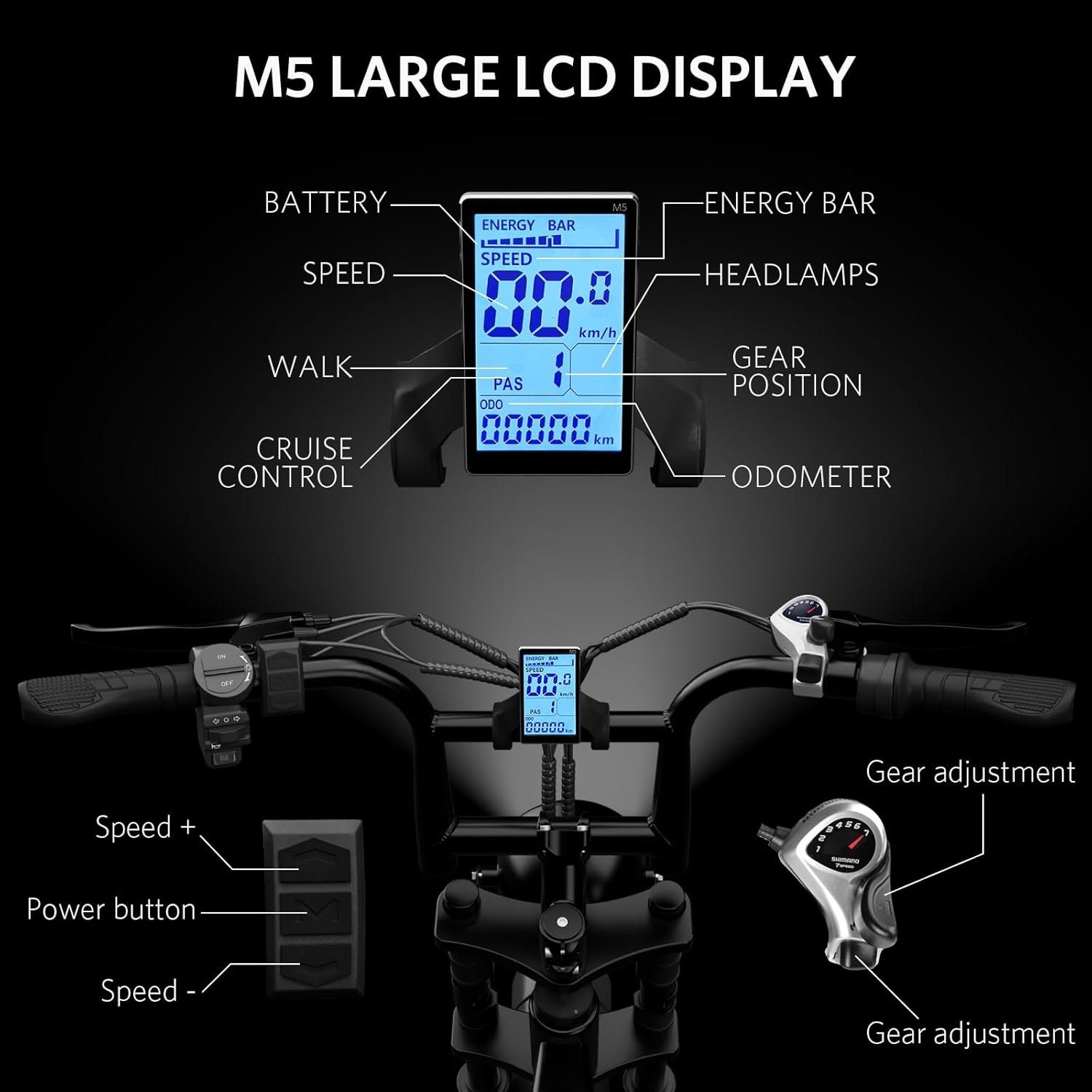 - 🚴‍♀LCD Display & Easy Riding: The large M5 LCD display shows electric bike’s speed, battery level, odometer and more. You can easily see the status of mountain electric bicycle, making your riding more convenient and easy