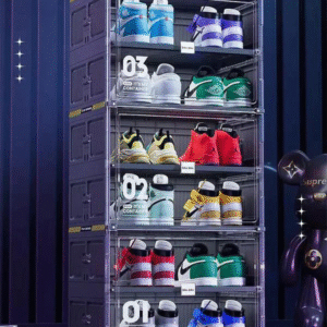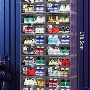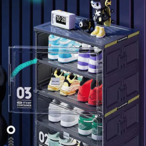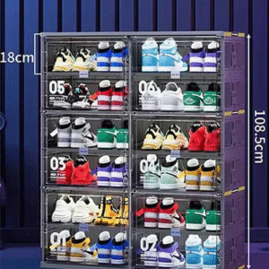 The magnetic door panel improves the sealing of the shoebox, adding a sophisticated touch to the overall design. The box’s sturdier structure provides a more secure load capacity, ensuring the organizer’s durability. With a double reinforcement that closes effectively and keeps its shape, this portable shoe organizer is not only a storage solution, but also a durable and efficient accessory for your home, revolutionizing the way you organize your shoe collection.